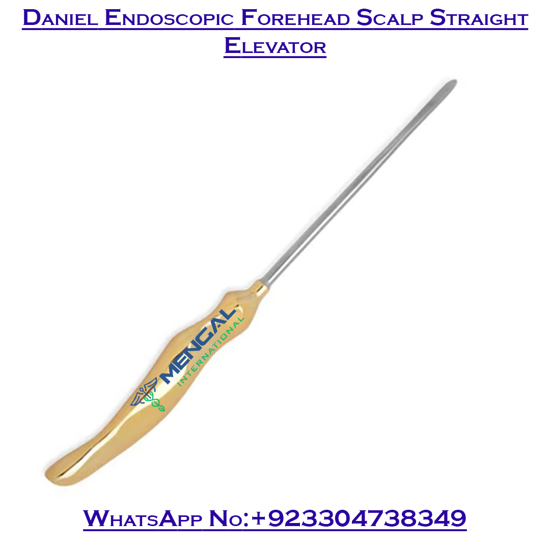 The Daniel Endoscopic Forehead Scalp Straight Elevator is a high-precision endoscopic plastic surgery instrument specifically designed for atraumatic scalp and periosteal elevation during endoscopic brow lift and forehead lift procedures. Its straight, slender profile allows controlled elevation in confined endoscopic spaces, ensuring superior surgical accuracy and safety.