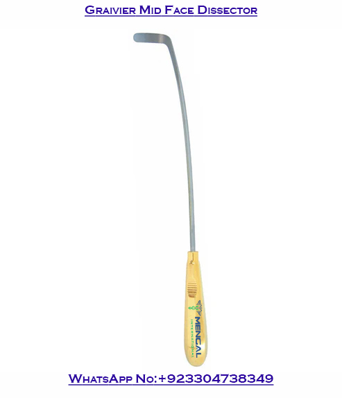 Manufactured from premium medical-grade stainless steel, the Graivier Mid Face Dissector delivers exceptional durability, corrosion resistance, and reliable performance in advanced facial surgery.