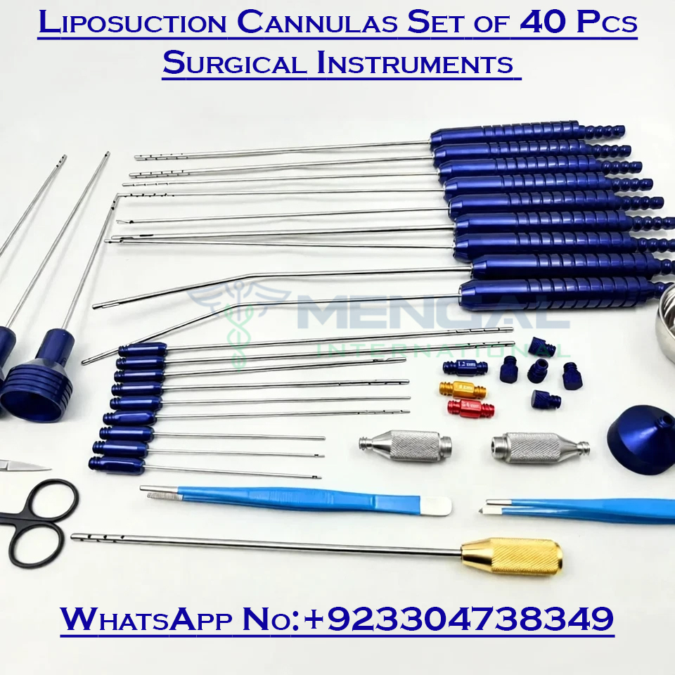 Liposuction Cannulas Set of 40 Pcs Surgical Instruments – Manufactured by Mengal International