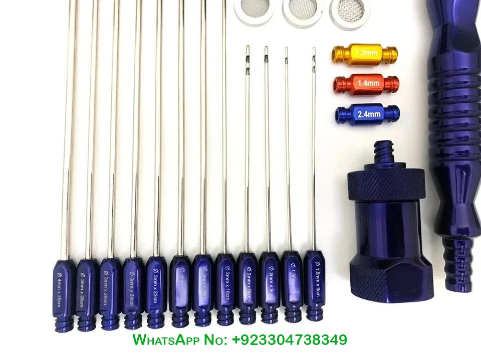Luer Lock Fat Transfer Cannula Set Contain 12 different Cannulas for different uses. This Set Features cannula useful for plastic surgery and fat transfer. These Luer Lock Cannulas can easily be connected to any Luer Lock Syringes. You can use these cannulas with the Handle as well for suction and tubing connection. Set is also come with other accessories mentioned in Product Detailed Description below.