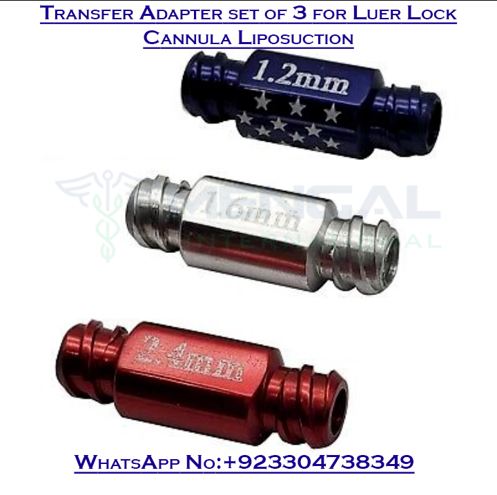 Transfer Adapter set of 3 for Luer Lock Cannula Liposuction Plastic Surgery Instruments